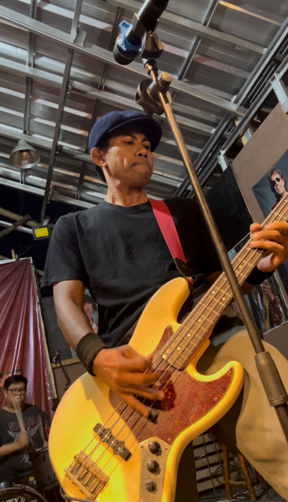 Hey! We’re back at the annual THRILL SIXTY event, a collaboration between Tangerang Kastem Kalcer and Temu Roda. It’s an honor to be invited to set this stage on fire. We were joined by Ruby on drums, Ewind from Kipas Kanada on guitar, and Wilda from Second Half on vocals. That night was absolutely wild!